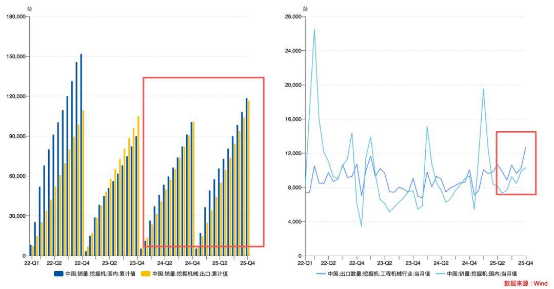 近年来,挖掘机等核心产品的出口销量占比显著提升,去年5月以来,挖掘机出口量连续超过了内销!