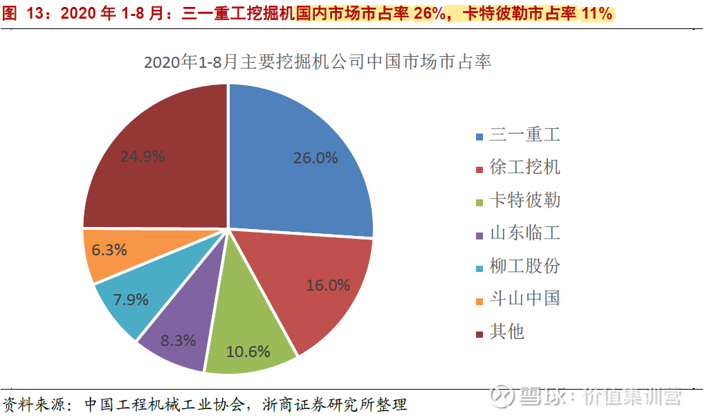 (1)挖掘机械。2020年1-8月,三一重工挖掘机国内市占率26%。参考海外卡特彼勒以及小松在本土市场的占有率(基本都在30%以上),三一的国内市占率还有继续提升空间。