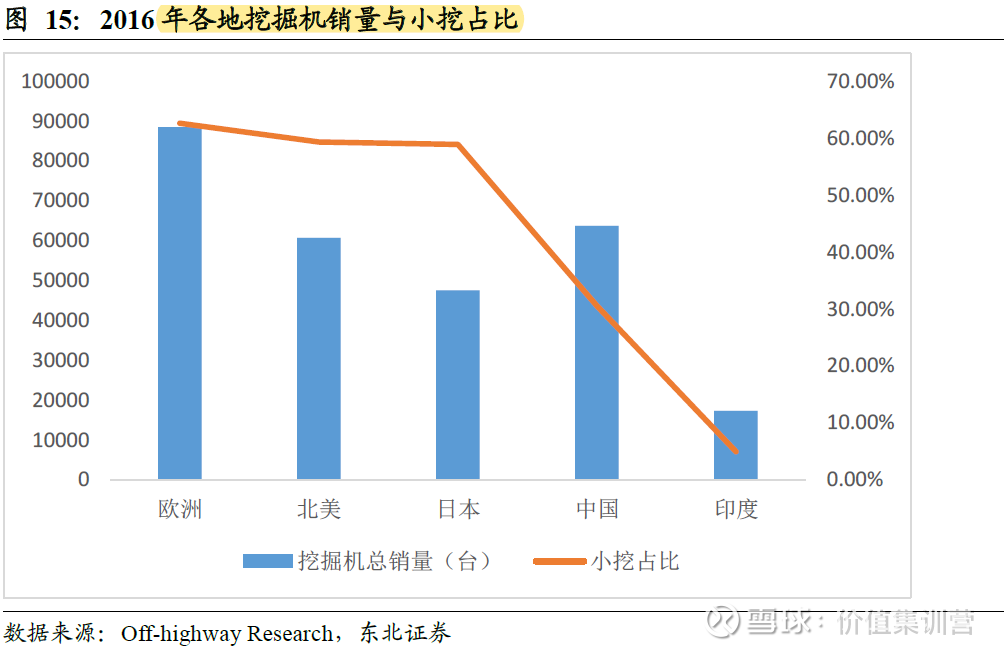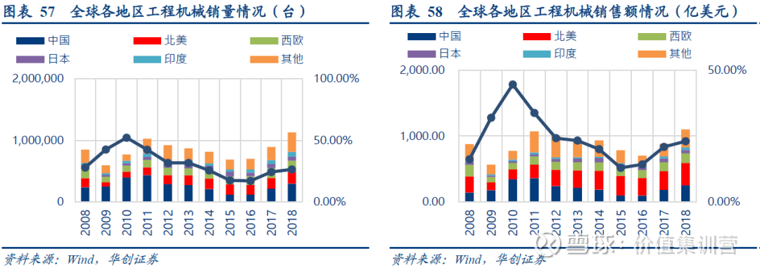 当前中国城镇化率在60%左右,对标海外,城镇化率从50%向70%提升阶段为工程机械行业扩张的阶段。挖掘机为工程机械的最主流品种,2018年挖掘机占工程机械销量接近六成。挖机具有明显的替代人工效应,一台1.5~2.0t的小型挖掘机能够取代大约6个成年人用铁铲和一辆手推车工作土方工程量。另外,小型土方工程越来越多,大型挖掘机不能高效合理地完成这些工作,给了微挖、小挖提供了大显身手的广阔舞台。价值集训营今天将介绍国内工程机械龙头三一重工。