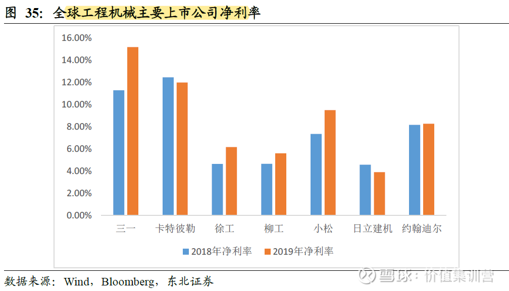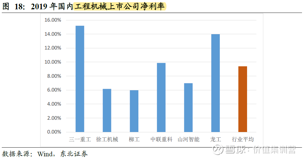 对比海外,三一重工的净利率在2019年已达15%,已经超过了卡特彼勒12%和小松9%的水平。